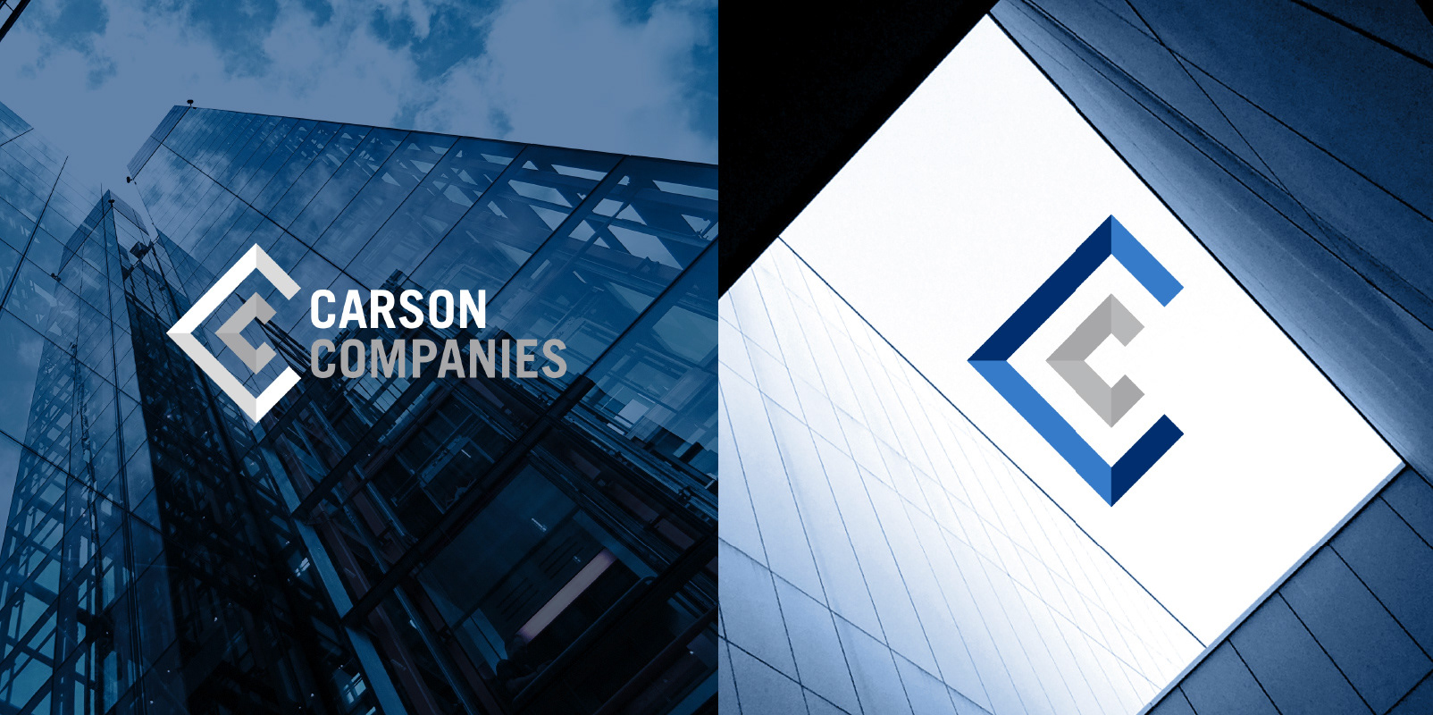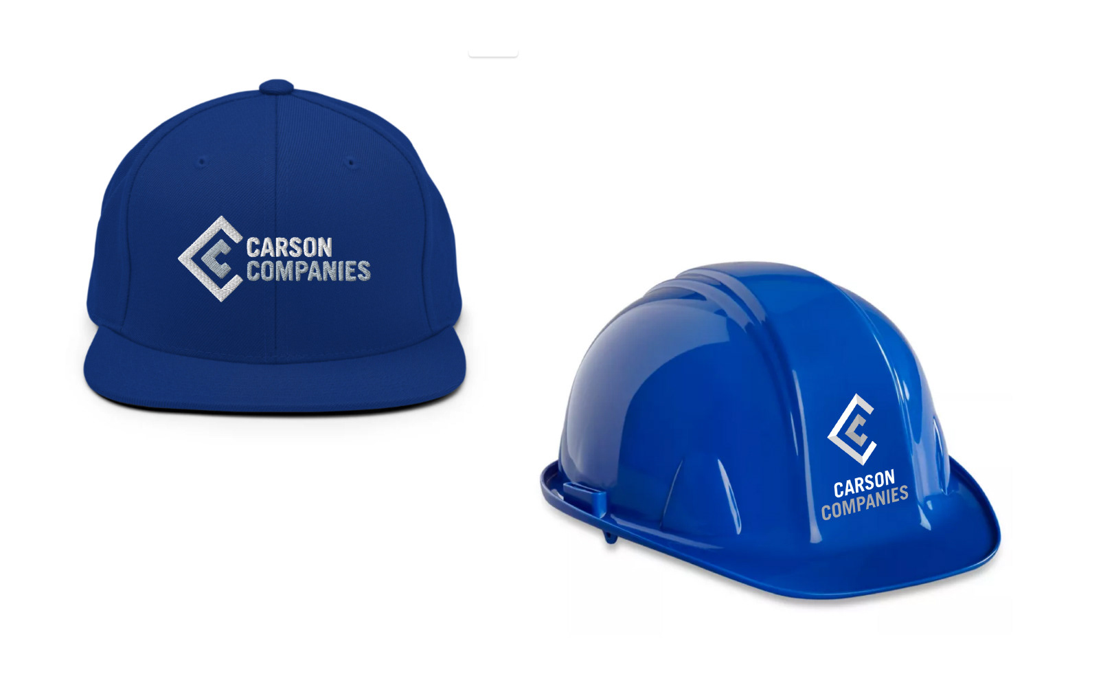 Brand identity work for Carson Companies, a construction material supply company. Using the most basic of shapes to represent the letter C while also mimicking concrete footers.