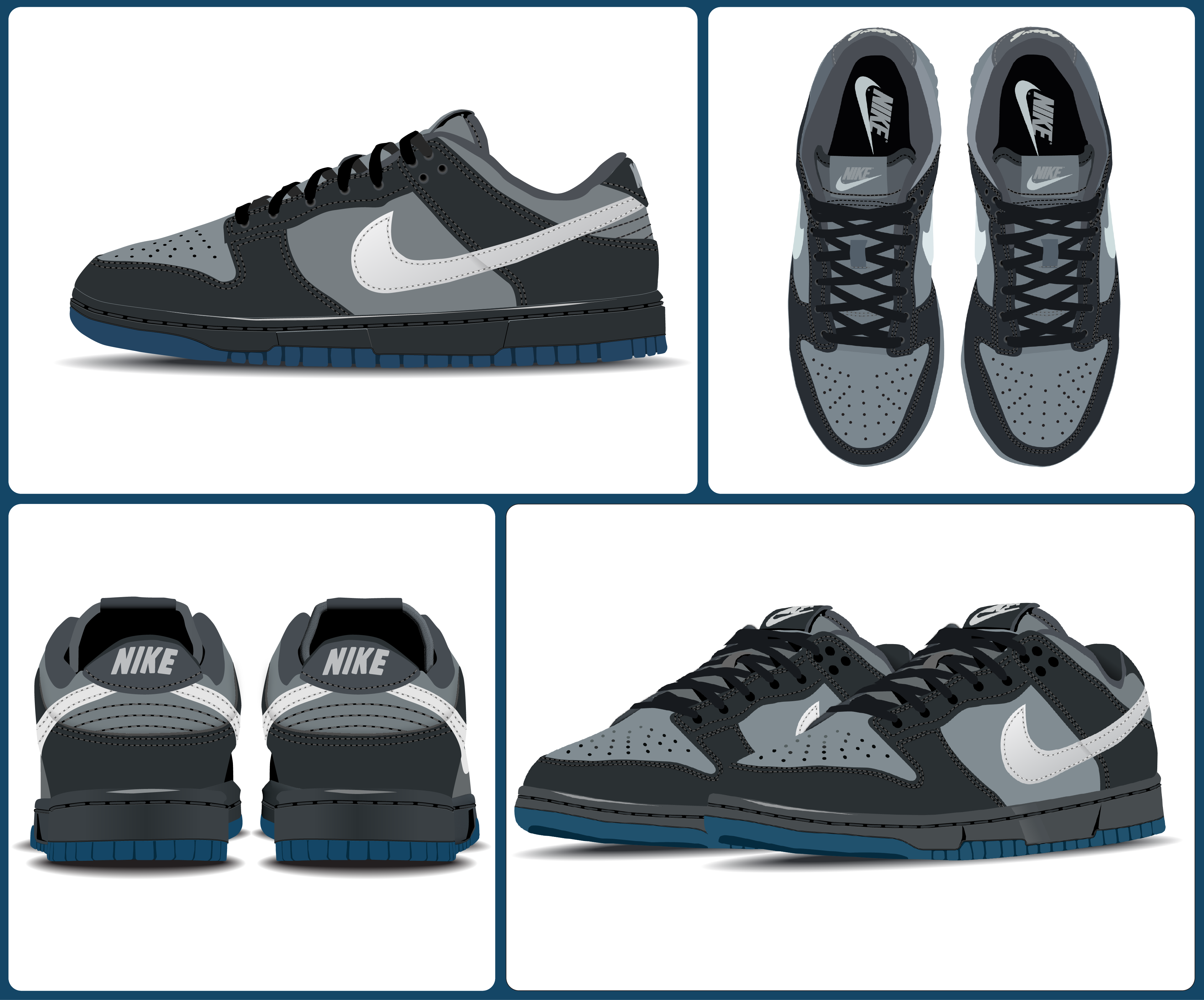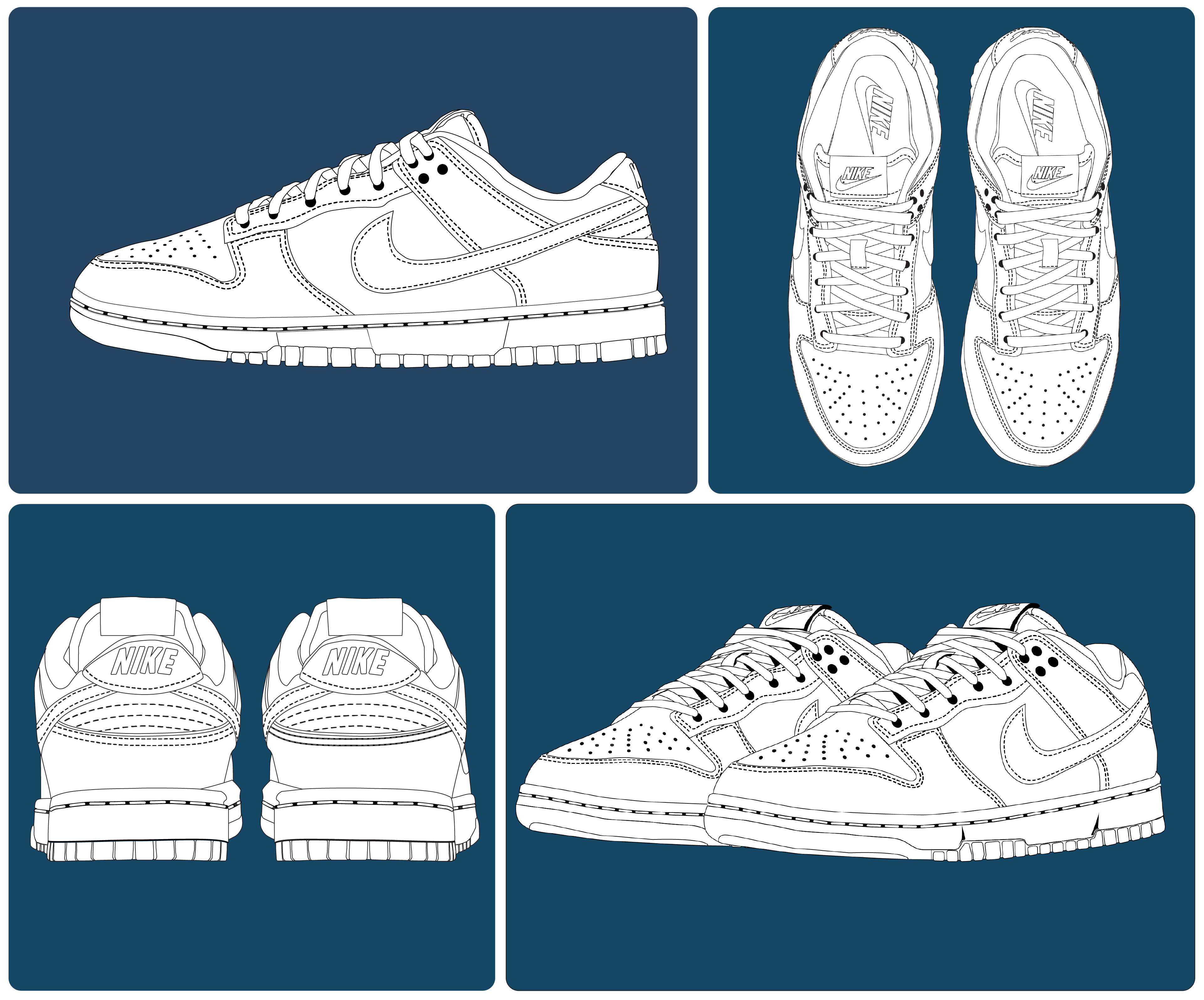 A personal project that started out as a series of Nike Dunk Low sneaker illustrations created in Adobe Illustrator and turned into a branded motion design piece with illustrations and text in a flex grid in After Effects.